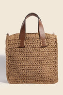 This faux leather handle straw braided handbag is a stylish and chic accessory perfect for adding a touch of sophistication to your outfit. The combination of faux leather handles and straw braided design creates a fashionable and trendy look. Elevate your style with this versatile handbag that is both elegant and on-trend.