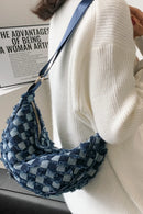 Raw Hem Checkered Denim Crossbody Bag
